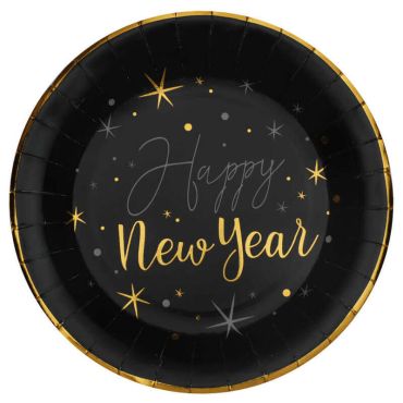 Pour la décoration de votre table de réveillon, cédez pour ce sublime lot de 10 assiettes en carton "Happy New Year" de 22,5 cm de diamètre.