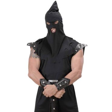 Cette cagoule de bourreau est en polyester noir avec trous pour les yeux et la bouche.
